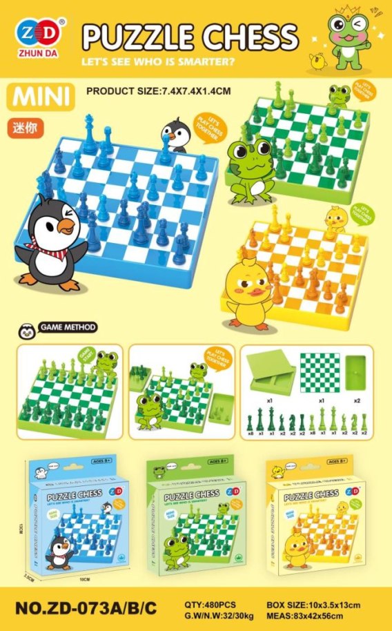 Popularna gra Szachy w wersji podróżnej dla dzieci od trzeciego roku życia. Nasze szachy posiadają pomarańczowo-białą planszę i żółte oraz pomarańczowe pionki, przyciągają kolorem uwagę dziecka. Gra rozwija strategiczne myślenie i ćwiczy pamięć. Kompaktowa wersja sprawia, że można ją zabrać wszędzie ze sobą. Zapewni rozrywkę w każdym miejscu.