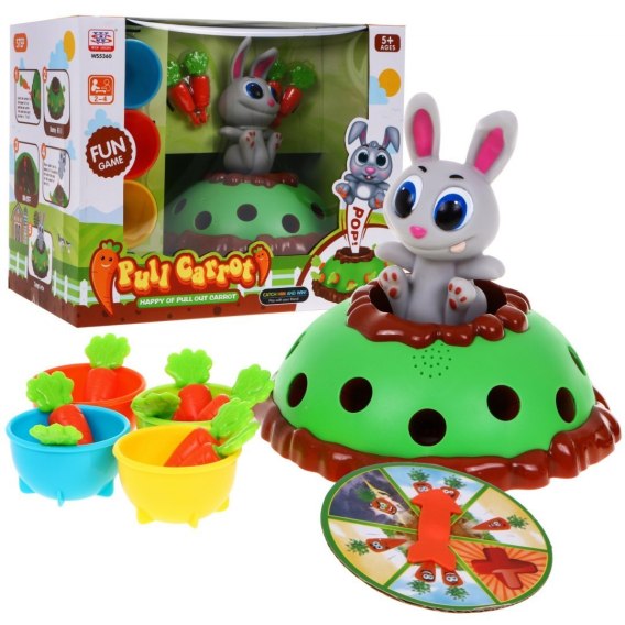 Osoba której przy wyjmowaniu marchewek króliczek się przestraszył musi go złapać, jeżeli jej się uda wygrywa, jeśli nie wygrywa ta osoba której udało się zabrać więcej marchewek.