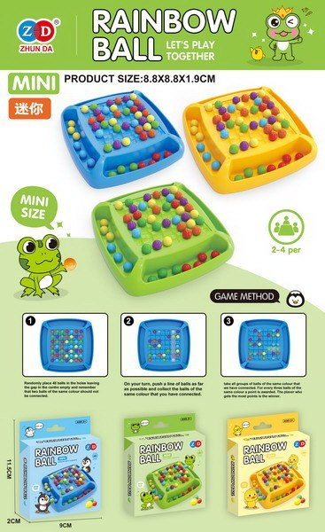 Gra zręcznościowa Kulki dla dzieci od 3-go roku życia. Gra wymaga spostrzegawczości, strategii i szybkiego działania. W zestawie znajduje się podstawka z wgłębieniami po bokach i różnokolorowe kulki. Należy umieścić wszystkie kulki na planszy, a następnie każdy z graczy wybiera sobie jeden kolor kółek i próbuje w jak najszybszym czasie pozbierać wszystkie kulki z planszy w tym właśnie kolorze. Gra usprawnia koncentrację, rozwija koordynację ręka-oko, uczy logicznego i szybkiego myślenia.