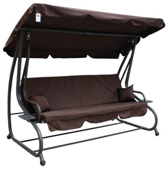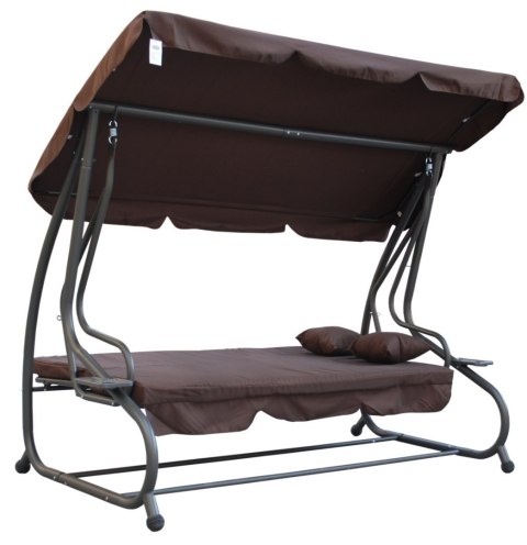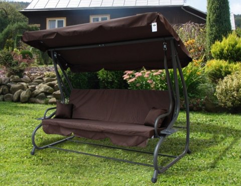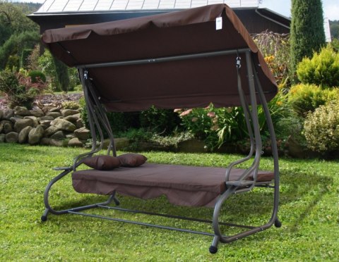 Huśtawka ogrodowa z rozkładanym siedziskiem i regulacją daszka, ciemny brąz [8011 NEW CB]