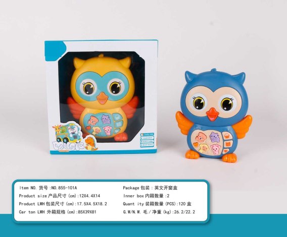 Interaktywna sowa z funkcją dźwięku i światła dla dzieci od 6-go miesiąca życia. Sowa wykonana została z najlepszej jakości plastiku, jest odporna na uderzenia i bezpieczna dla maluszków, nie posiada, żadnych ostrych krawędzi. Sowę wykonano w żywych kolorach, przyciągających wzrok dziecka i zachęcających do zabawy. Na brzuszku sowy znajduje się panelik z przyciskami uruchamiającymi odgłosy zwierząt (w pierwszym trybie), melodie, dźwięki Do-Re-Mi (w drugim trybie) oraz efekty świetlne w postaci migoczących światełek na skrzydełkach sowy. Tryby zmieniamy przyciskiem w kształcie serduszka. Zabawka posiada regulację głośności. Zasilana jest bateriami typu 2 x AA 1,5 V (brak w zestawie)