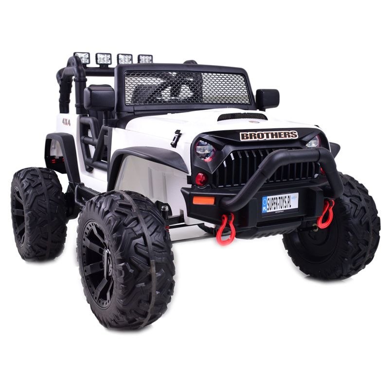 JEEP BROTHERS 24V z pełnej wersji napędzany 2 mocnymi silnikami 200 W ( ŁĄCZNIE 400 W mocy, z całą pewności zainteresuje młodego wielbiciela jazdy po terenie.