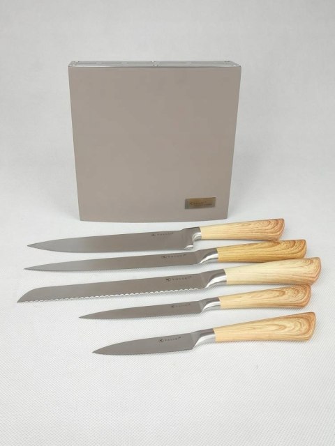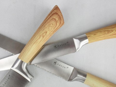 KASSEL Zestaw noży w bloku 5el. Solidne. KUTA STAL