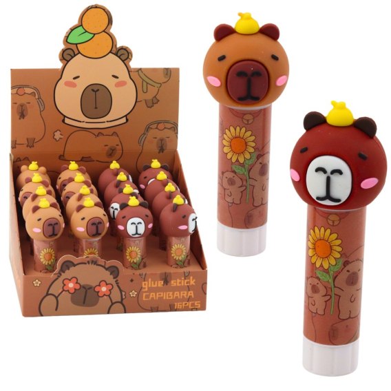 Urocza nakrętka w kształcie głowy kapibary nadaje klejowi wyjątkowego charakteru i sprawia, że jest on nie tylko praktycznym akcesorium, ale także atrakcyjnym gadżetem. Odcień wybierany losowo, co dodaje niespodzianki przy zakupie. Kleje sprzedawane są osobno, dzięki czemu można wybrać dowolną ilość sztuk.