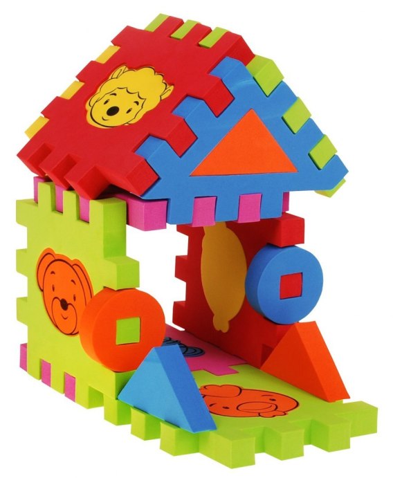 Puzzle łączą się ze sobą w dowolnej konfiguracji i wtedy można z nich stworzyć figury przestrzenne - kostkę lub domek.