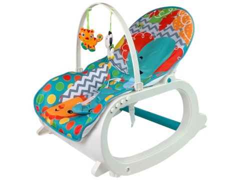 Leżaczek dzięki intuicyjnej obsłudze, a przede wszystkim prostej konstrukcji, może być używany na różne sposoby. Z powodzeniem wykorzystasz go jako bujaczek dla maluszka, a także jako klasyczny fotelik dla dziecka, który rozłożysz w każdych warunkach. Wielofunkcyjność siedziska dla malucha sprawia, że możecie zabrać go ze sobą wszędzie, a w zależności od sytuacji zmienić jego zastosowanie. Dodatkowo nad siedziskiem znajduje się okrąg z przyjaznymi maskotkami.