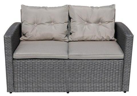 Komplet mebli z technorattanu - zestaw ława z dwiema wysuwanymi szufladami + sofa + dwa fotele + 8 poduszek [FS-3049]