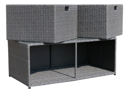 Stelaż malowany jest metodą proszkową, co pozwala uzyskać trwalszy efekt oraz zwiększyć odporność na korozję. Całość konstrukcji pokryta jest płaskim technorattanem.