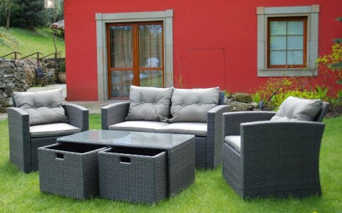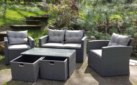 - technorattan wykonany jest z polietylenu dzięki czemu zestaw jest niezwykle lekki i funkcjonalny.