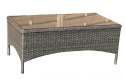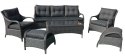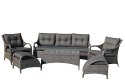 Opis Aluminiowy komplet mebli z technorattanu  -zestaw sofa z stołem + 2 fotele + 2 pufy (podnóżki)brązowy[201053-A]