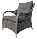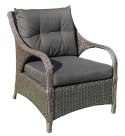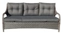 Stelaż mebli pokryty jest grubymi przyjemnymi w dotyku paskami technorattanu.