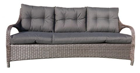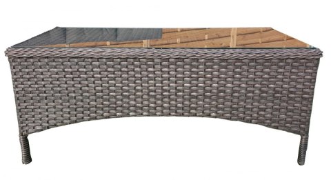Stelaż mebli pokryty jest grubymi przyjemnymi w dotyku paskami technorattanu.