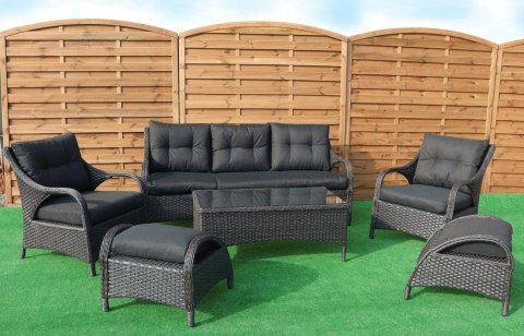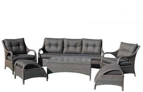 Aluminiowy komplet mebli z technorattanu - zestaw sofa z stołem + 2 fotele + 2 pufy (podnóżki) brązowy [201053-A]