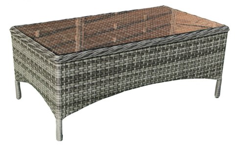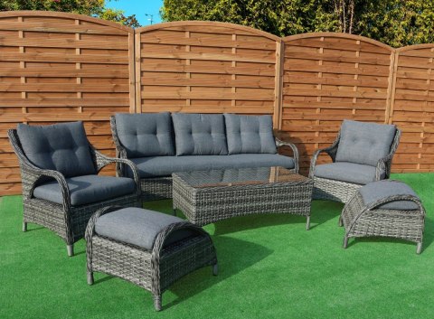 Aluminiowy komplet mebli z technorattanu - zestaw sofa z stołem + 2 fotele + 2 pufy (podnóżki) szary [201053-B]
