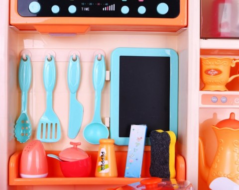 Rewelacyjna, bogato wyposażona, duża multifunkcyjna kuchnia. Kuchnia posiada zlew z kranem z którego leje się woda, podświetlane palniki z odgłosami gotowania i smażenia, jeden z palników posiada funkcję wytwarzania pary wodnej, ruchome pokrętła, okap z lampką i panelem muzycznym, otwierany piekarnik, otwieraną lodówkę, zegar, półeczki i liczne akcesoria kuchenne (65 elementów). W akcesoriach kuchennych znajduje się min. jajowar, który „gotuje" jajka, wydając przy tym dźwięki oraz tablica z kredą i gąbką.