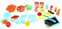 Kuchnia posiada zlew z kranem z którego wypływa woda, dwa palniki indukcyjne, ruchome pokrętła, otwieraną lodówkę, półeczki, znikopis oraz mnóstwo akcesoriów kuchennych.