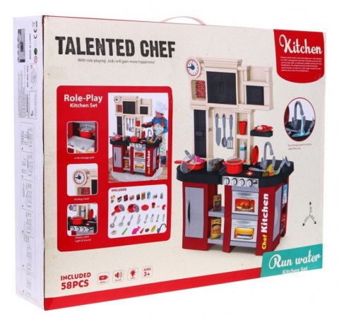 Wysokiej jakości, duża kuchnia interaktywna z prawdziwą bieżącą wodą z kranu, światłami i dźwiękami gotowania oraz smażenia.