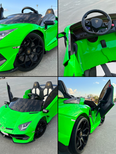 Najnowsze LAMBORGHINI AVENTADOR SVJ 24V DRIFT - zachwyci całą pewności zainteresuje młodego wielbiciela tej marki napędzane jest 2 mocnymi silnikami STRONG2 300W. Silniki 25000 RPM.