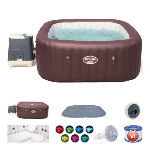 - Hydrodynamiczny system masażu Lay-Z-Spa™ wyposażony w 8 regulowanych hydro dysz i 140 kojących dysz powietrznych,