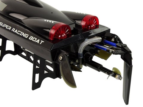 Realistyczna motorówka RC, czarna, 48 cm x 12 cm x 9,5 cm, 55 km/h, 2.4 GHz, akumulator, pilot, ochrona przed dachowaniem. Rozpocznij przygodę na wodzie!