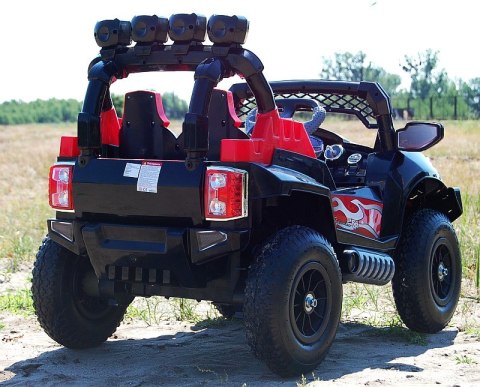 Ciekawym elementem jest oświetlenie pojazdu - świecące światła przednie, podświetlana maska oraz światła na pałąku. Wielkie koła zapewnią komfort jazdy po nierównym terenie.