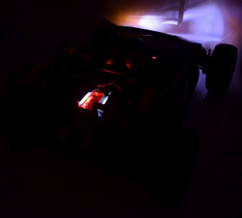 MEGA BUGGY T 400 W z systemem ESW - system wolnego startu i hamulcem oraz z kołami EVA zasilanie pojazdu - 1X24 V . Dzięki zastosowanym mocnym silnikom 200 W ( 2 sztuki), auto jeździ po nierównym terenie bez żadnych problemów - posiada olbrzymie miękkie koła EVA, Najciekawszą funkcją pojazdu jest SYSTEM WOLNEGO STARTU, oraz SYSTEM HAMOWANIA Z PILOTA. Ciekawym elementem jest oświetlenie pojazdu - świecące światła przednie i tylne z możliwością ich wyłączenia osobnym przyciskiem Duże koła EVA zapewniają cichą jazdę. Podświetlana deska rozdzielcza pojazdu oraz wskaźnik naładowania akumulator z nowoczesnym panelem z wejściem USB, MP3 bluetoothem oraz z wgranymi opowieściami sterowanym za pomocą przycisku w kierownicy ( jak w prawdziwym aucie) dają pełen komfort użytkowania pojazdu - wiemy na jak długo mamy jeszcze " paliwa" ( napięcia w akumulatorach). Nowoczesny panel daje możliwość odgrywania utworów z urządzeń zewnętrznych oraz sterowania nimi za pomocą przycisku na kierownicy.