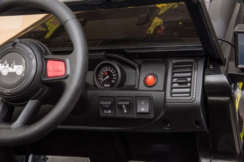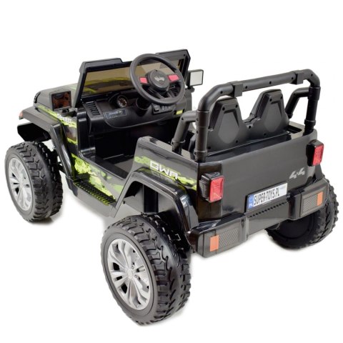 WIELKI JEEP SPEED GWA z pełnej wersji napędzany dwoma mocnymi silnikami 45 W, z całą pewności zainteresuje młodego wielbiciela jazdy po terenie.