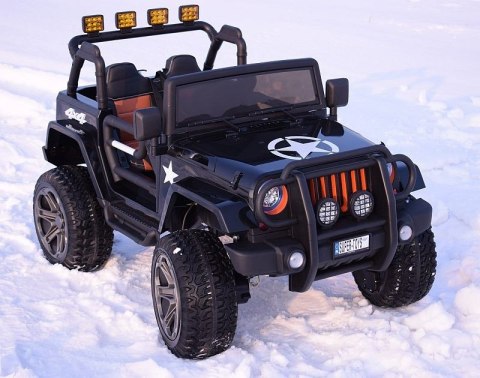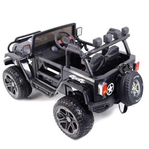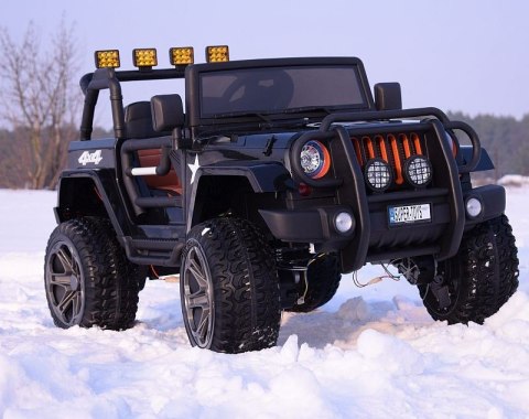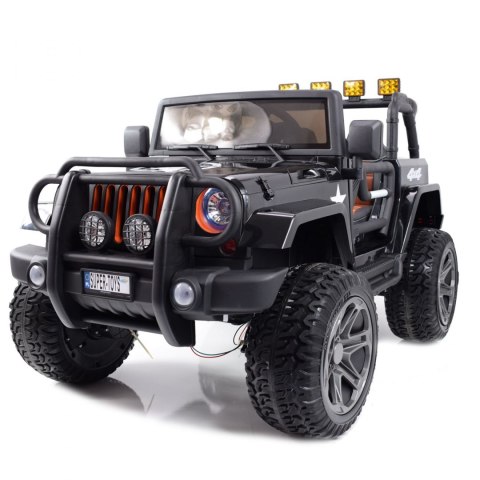 AUTO MEGA JEEP 4X4 Z REDUKTOREM NAPĘDU 2X2 LUB 4X4 EXCLUSIVEz systemem ESW - system wolnego startu i hamulcem oraz z kołami EVA zasilane na dwa akumulatory 12 V z napędem na dwa lub cztery koła zachwyci nie jednego przyszłego kierowcę. Dzięki zastosowanym najmocniejszym silnikom 45 W, auto jeździ po nierównym terenie bez żadnych problemów - posiada olbrzymie miękkie koła EVA, Najciekawszą funkcją pojazdu jest SYSTEM WOLNEGO STARTU, oraz SYSTEM HAMOWANIA Z PILOTA Z FUNKCJĄ BLOKADY JAZDY MANUALNEJ