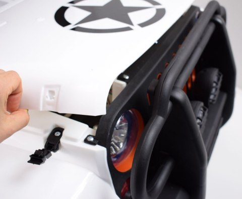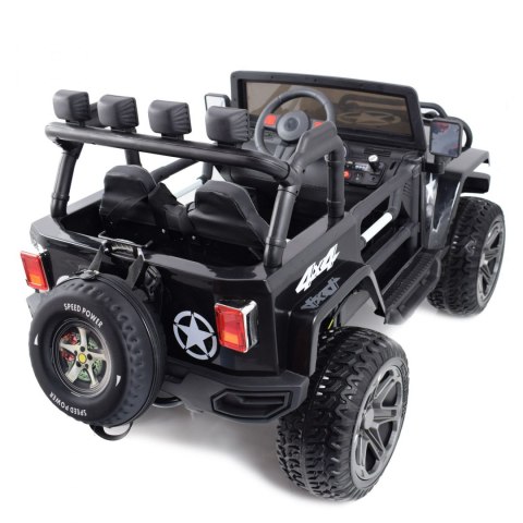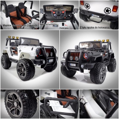 Napęd 2x2 lub 4x4 z reduktorem napędu który automatycznie załącza napęd 4x4, miękkie koła, SYSTEM WOLNEGO STARTU i SYSTEM HAMOWANIA, otwierana maska, otwierane koło zapasowe, pasy dla dwójki dzieci, amortyzatory z przodu i z tyłu , uchwyt do holowania