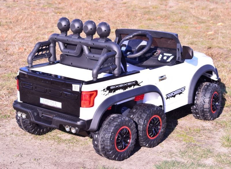 NAJWIĘKSZY EEP  WORKS SIX 4X4 z pełnej wersji napędzany czterema mocnymi silnikami 45 W, z całą pewności zainteresuje młodego wielbiciela jazdy po terenie.