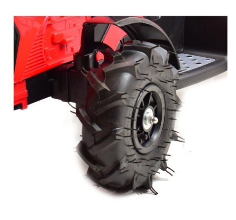 Wygląd traktora przypomina prawdziwe pojazdy z tej grupy. Duże pompowane koła zapewniają komfort jazdy, a wygodne siedzenie z pasami wygodną podróż.