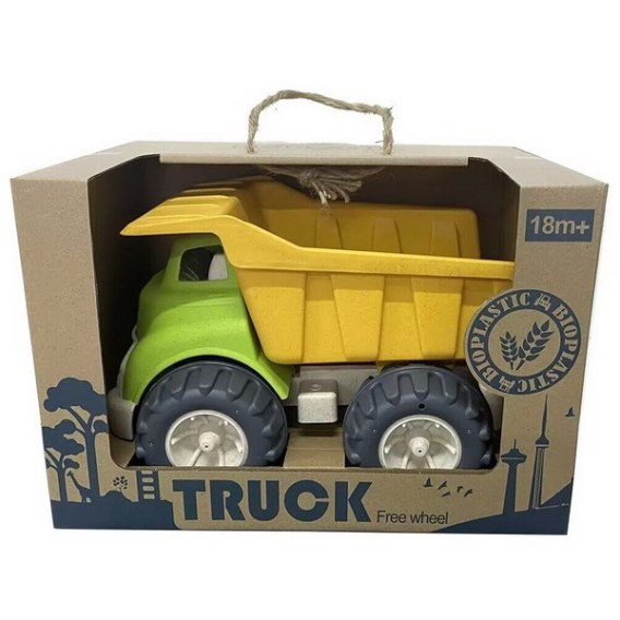 Wywrotka wykonana z bioplastiku dla dzieci od 18-go miesiąca życia. Eko-tworzywo jest bezpieczne dla dzieci i przyjazne dla środowiska. Pojazd jest wytrzymały i odporny na uszkodzenia, posiada ruchome elementy. Ręcznie możemy podnosić i opuszczać przyczepę pojazdu. Dzięki dużym kołom pojazd idealnie sprawdzi się do zabawy na zewnątrz, np. w piasku.