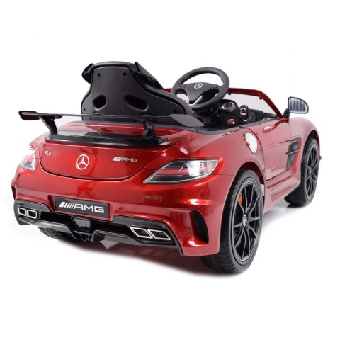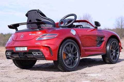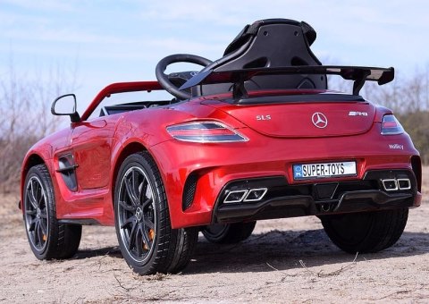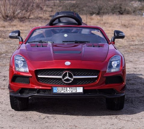 AUTO MERCEDES SLS AMG GT zasilane na 12 V z napędem na dwa koła oraz otwieranymi wysokimi drzwiami. otwieranym bagażnikiem  zachwyci nie jednego przyszłego kierowcę. Dzięki zastosowanym najmocniejszym silnikom  45 W, auto jeździ po nierównym terenie bez żadnych problemów, a dodatkowo silniki te są bardzo dobrej jakości. Najciekawszą funkcją pojazdu jest SYSTEM WOLNEGO STARTU, WSPOMAGANIE KIEROWNICY.  AMORTYZATORY  oraz SYSTEM HAMOWANIA Z PILOTA