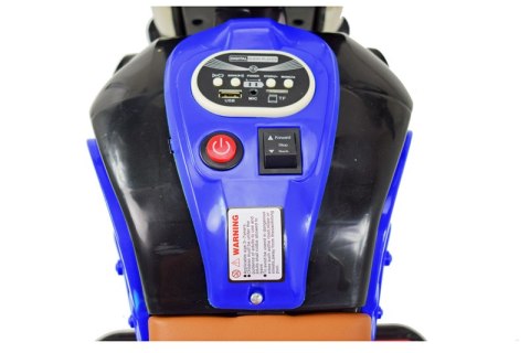 Panel z dźwiękami ( dźwięki odpalania motocykla) z wejściem USB i AUX i oświetlenie pojazdu ( światła oraz świecące koła) umili o urazmaici zabawą.