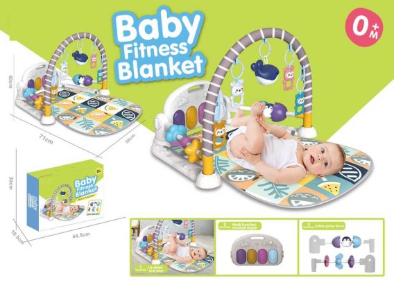 Interaktywna, wielofunkcyjna mata dla najmłodszych od pierwszych dni życia. Zestaw zbudowany jest z wygodnej maty dla maluszka, pałąka z zawieszkami i pianinka. Mata rośnie wraz z dzieckiem. W pierwszym okresie życia, do szóstego miesiąca życia, maluszek może leżeć na wygodnej macie, kopiąc nóżkami w pianinko, oraz przebierać rączkami próbując dosięgnąć zawieszek na pałąku. Między szóstym a dwunastym miesiącem, zestaw będzie niezwykle pomocny przy nauce siadania. Starsze dziecko może grać już samodzielnie na pianinku. Pianinko, można w bardzo łatwy sposób przekształcić w stolik muzyczny za pomocą pokręteł do regulacji, znajdujących się po boku konstrukcji. Możemy pochylać pianinko w kilku pozycjach, lub je odłączyć od zestawu i zabrać w różne miejsca. Dodatkowo pianinko posiada wygodną rączkę do przenoszenia. Pianinko wyposażono w cztery podświetlane klawisze, oraz przycisk z nutką odtwarzający melodie. Jest też włącznik i wyłącznik oraz regulacja głośności. Na pałąku znajdują się 4 zawieszki z misiami, które również delikatnie grzechoczą oraz podświetlany delfinek. Po bokach podstawy znajdują się przekładanki z koralikami. Pianinko zasilane jest bateriami typu 3 x AA 15 V (brak w zestawie). Delfinek bateriami typu 2 x AAA 1,5 V (brak w zestawie). Konstrukcja zestawu i pianinko wykonano z bioplastiku, materiału w pełni bezpiecznego dla najmłodszych i środowiska naturalnego.