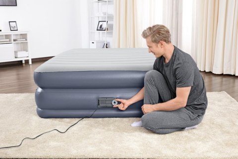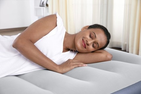 Dwuosobowy dmuchany materac to gwarancja wygodnej i przespanej nocy. Dzięki wbudowanej pompce elektrycznej Twój materac samoczynnie napompuje się w 5 minut, co pozwoli Ci zaoszczędzić czas i siłę. Górna część pokryta jest miękkim flokowanym materiałem, który zwiększa komfort odpoczynku. Materiał, z którego został wytworzony materac jest wytrzymały, dzięki czemu nie będziesz musiał martwić się o jakiekolwiek uszkodzenia. Materac dopasowuje się do ciała i doskonale sprawdza się jako drugie łóżko w domu. Dzięki antybakteryjnej powierzchni Ultra-Fresh™ Twoje łóżko jest chronione przed rozwojem bakterii powodujących nieprzyjemny zapach i pleśni na powierzchni do leżenia.