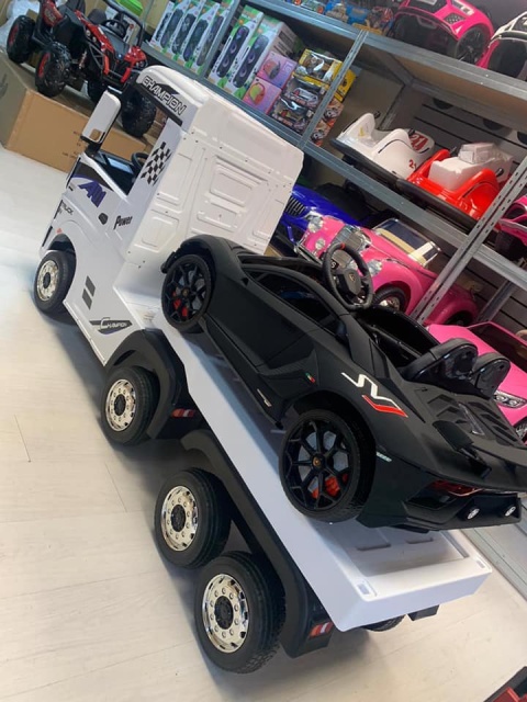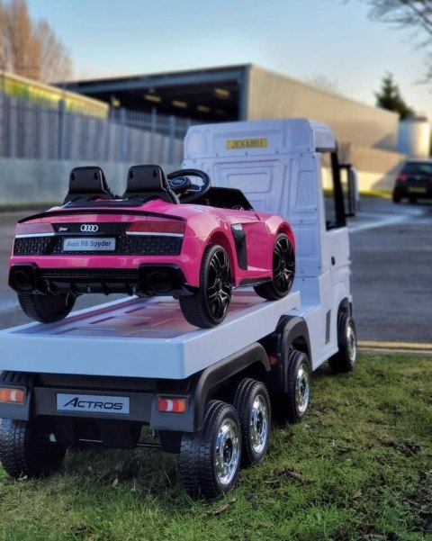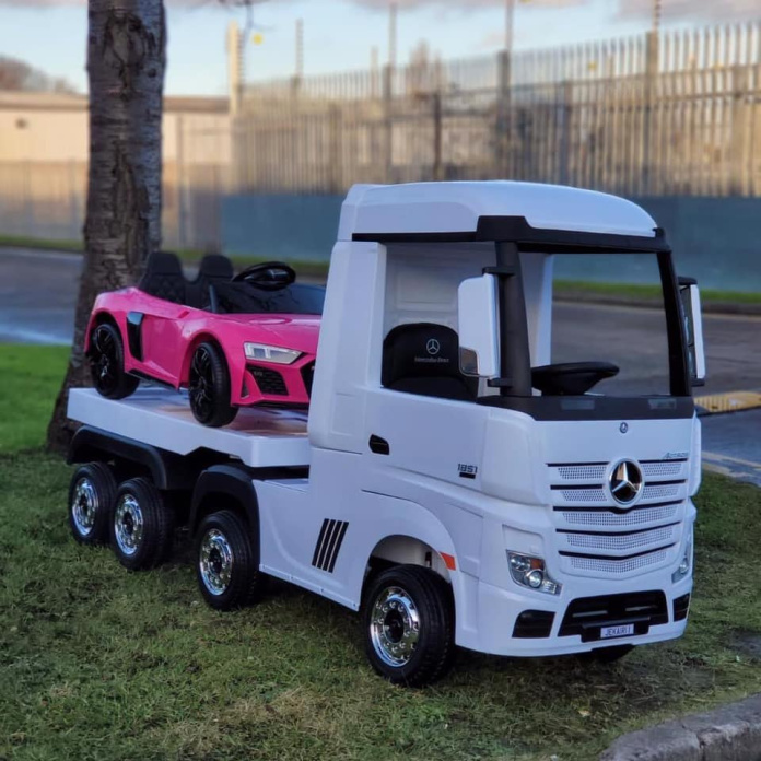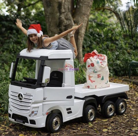 Ciężarówka MERCEDES ACTROS w pełnej wersji napędzany czterema mocnymi silnikami 45 W, z całą pewności zainteresuje młodego wielbiciela ciężarówek.