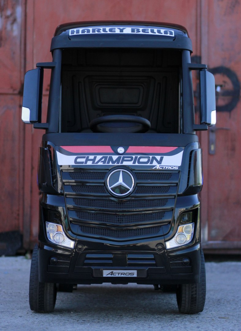 Ciężarówka MERCEDES ACTROS w pełnej wersji napędzany czterema mocnymi silnikami 45 W, z całą pewności zainteresuje młodego wielbiciela ciężarówek.
