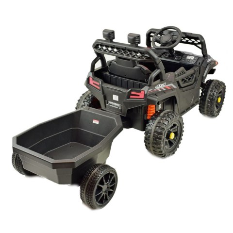 BUGGY Z PRZYCZEPĄ ZASILANY AKUMULATOREM 0929-AL zachwyci całą pewności zainteresuje młodego wielbiciela aut tego rodzaju. Napędzane jest dwoma mocnymi silnikami STRONG2.
