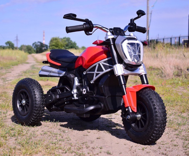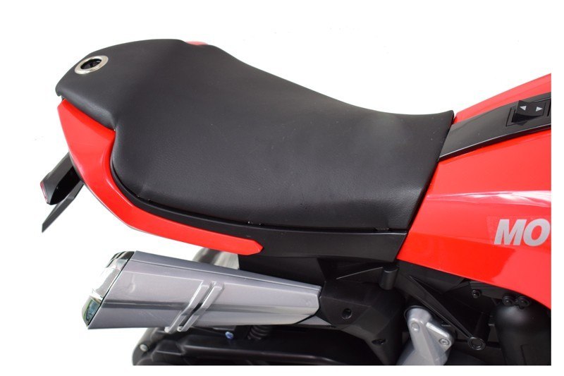 Dźwięki jazdy motoru,, pompowane koła, światła, miękkie siedzenie, nowoczesny panel, gaz w manetce, hamulec nożny