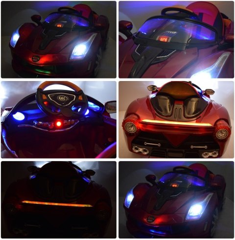 Sterowanie pilotem, auto posiada 4 biegi,pilota zdalnego sterowania z kontrola rodzicielską, otwierane drzwi, miękkie siedzenie, amortyzatory i super atrakcyjne oświetlenie.. Dzięki zastosowanym najmocniejszym silnikom 45 W, auto jeździ po nierównym terenie bez żadnych problemów, a dodatkowo silniki te są bardzo dobrej jakości. Atrakcją są amortyzowane koła przednie dzięki właśnie nim młody kierowca może poczuć komfort jazdy.