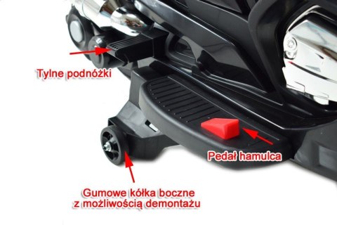 Dodatkowym atutem tego pojazdu są boczne kółka, które dla uczących się jeździć są dużym ułatwieniem w prowadzeniu pojazdu. Kółka można w łatwy sposób odkręcić tak aby doświadczony fan 2 kółek jeździł motorem jak dorosły motocyklista.