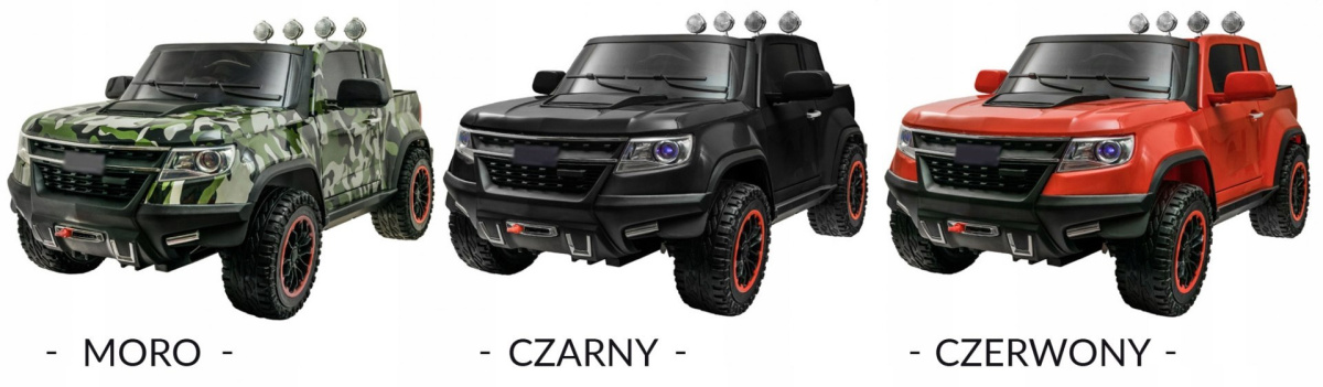 Auto wyposażone jest w 4 mocne silniki 12V 35W + 1 x akumulator żelowy 12V 7AH + PILOT 2,4Ghz dla rodzica.