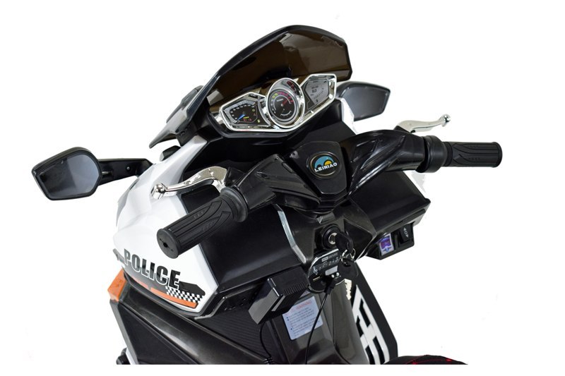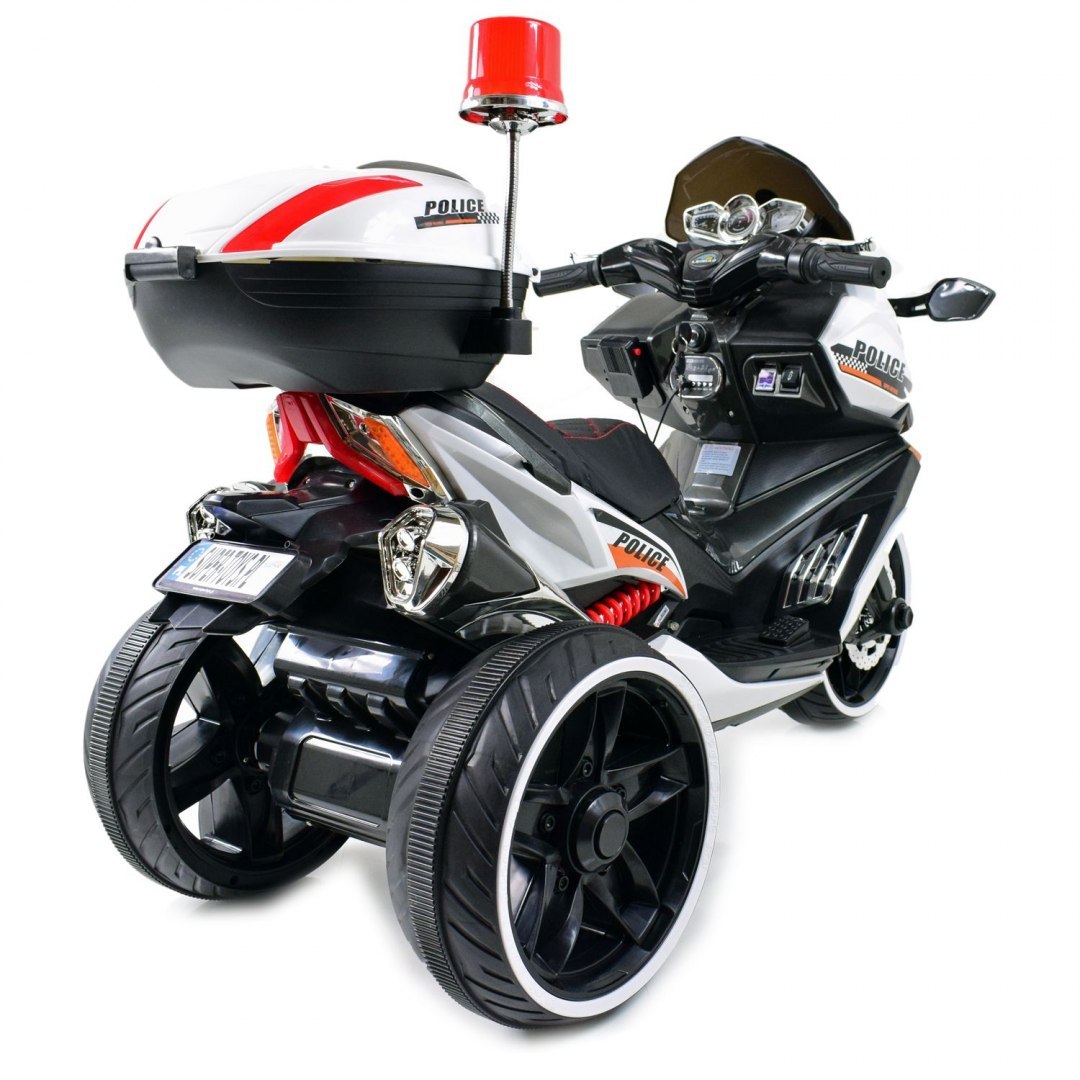 SKUTER POLICYJNY napędzany dwoma silnikiami 45 W z całą pewności zainteresuje młodego wielbiciela motocykli. Skuter jest olbrzymi - jest to największy skuter w naszej ofercie.