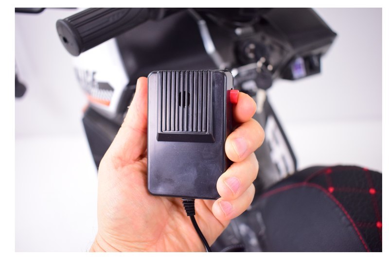 Panel z dźwiękami ( dźwięki odpalania motocykla) z wejściem USB i AUX i oświetlenie pojazdu ( światła oraz świecące koła) umili o urazmaici zabawą.