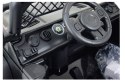 AUTO MEGA JEEP 4X4 GEOLAND 800 W z systemem ESW - system wolnego startu i hamulcem oraz z kołami EVA zasilanie pojazdu - 1X24 V z napędem na cztery koła ( najmocniejsza wersja) zachwyci nie jednego przyszłego kierowcę. Dzięki zastosowanym najmocniejszym silnikom 200 W ( 4 sztuki), auto jeździ po nierównym terenie bez żadnych problemów - posiada olbrzymie miękkie koła EVA, Najciekawszą funkcją pojazdu jest SYSTEM WOLNEGO STARTU, oraz SYSTEM HAMOWANIA Z PILOTA. Ciekawym elementem jest oświetlenie pojazdu - świecące światła przednie i tylne z możliwością ich wyłączenia osobnym przyciskiem Duże koła EVA zapewniają cichą jazdę. Podświetlana deska rozdzielcza pojazdu oraz wskaźnik naładowania akumulator z nowoczesnym panelem z wejściem USB, MP3,i wgranymi opowieściami oraz RADIEM FM sterowanym za pomocą przycisku w kierownicy ( jak w prawdziwym aucie) dają pełen komfort użytkowania pojazdu - wiemy na jak długo mamy jeszcze " paliwa" ( napięcia w akumulatorach). Nowoczesny panel daje możliwość odgrywania utworów z urządzeń zewnętrznych oraz sterowania nimi za pomocą przycisku na kierownicy.