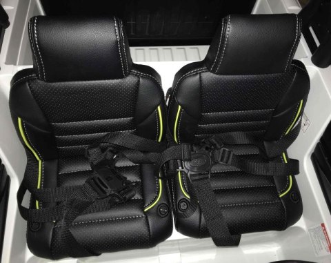 TOYOTA HILLUX W NAJMOCNIEJSZEJ WERSJI 24V - 480 WAT W WERSJI Z REALISTYCZNYM DŹWIĘKIEM SPORTOWEGO SILNIKA - super jakość wykonania. Auto z otwieranymi drzwiami, miękkimi kołami i miękkim siedzeniem z 5 punktowymi pasami. Napędzany 2 silnikami po 240 W "STRONG 2" Amortyzatory kół, sterowanie pojazdem za pomocą pilota . Panel posiada wejście na USB, slot na kartę oraz wejście MICRO - możliwość połączenia z telefonem, wskaźnik naładowania akumulatora w panelu. Wgrane są w nim utwory oraz dodatkowe zapowiedzi, pojazd mówi do dziecka. Pilot 2.4 Ghz z hamulcem i trzema prędkościami jazdy