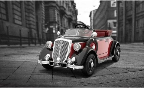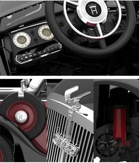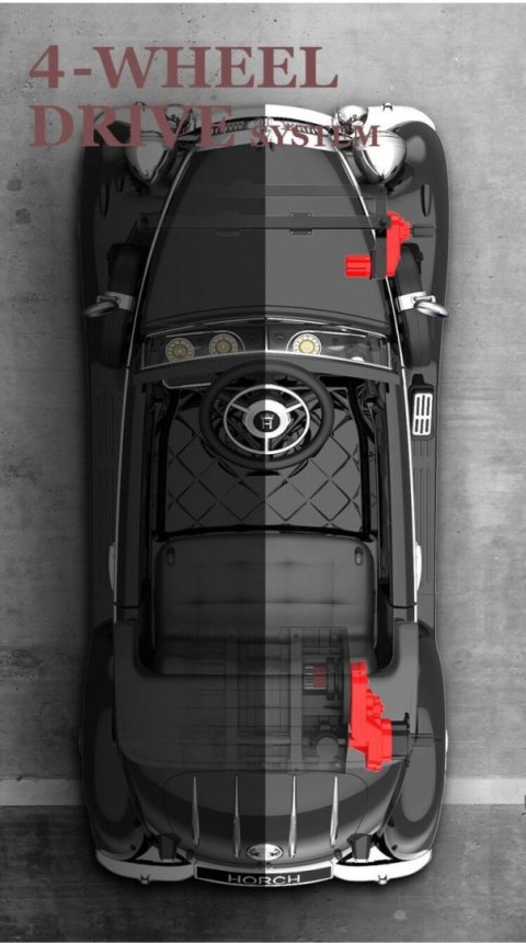Kierownica oraz różne melodie wgrane w panel są dodatkową atrakcją. Panel posiada wejście na USB, AUX, regulację głośności, wskaźnik nałądowania akumulatora oraz realistyczny dźwięk pracy silnika HORSCHA
