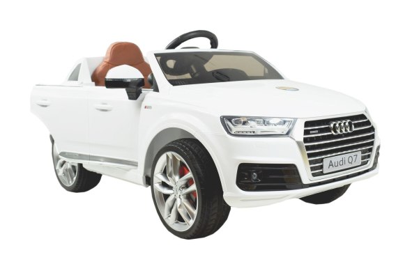 AUTO  AUDI Q7z otwieranymi drzwiami, miękkim siedzeniem i systemem ESW ( wolnego startu)  oraz prawdziwym radiem   zasilane na 12 V z napędem na dwa koła   zachwyci nie jednego przyszłego kierowcę. Dzięki zastosowanym najmocniejszym silnikom  45 W, auto jeździ po nierównym terenie bez żadnych problemów, a dodatkowo silniki te są bardzo dobrej jakości.Jedną z wielu funkcji tego modelu są AMORTYZATORY, System wolnego startu ESW, miękkie siedzenie oraz otwierane drzwi i miękkie koła.