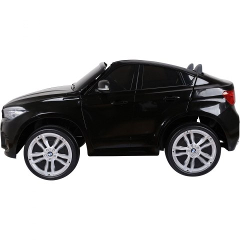 AUTO BMW X6M w wersji dla 2 dzieci z miękkimi kołami EVA oraz miękkim siedzeniem zasilane na 12 V z napędem na dwa koła zachwyci nie jednego przyszłego kierowcę. Dzięki zastosowanym najmocniejszym silnikom 120 W, auto jeździ po nierównym terenie bez żadnych problemów, a dodatkowo silniki te są bardzo dobrej jakości.